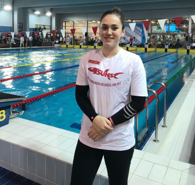 Netanya, 28. Juni 2017: Eine unglaubliche Saison für Lena Grabowski hat ihren vorläufigen Höhepunkt mit dem Start bei der Junioren-EM im israelischen Netanya erreicht. Mit einem tollen Rennen in ihrer Paradedisziplin 200 Meter Rücken gab die Parndorferin ein Versprechen für die Zukunft ab. In ihrem ersten JEM-Start lieferte sie ein selbstbewusstes Rennen ab und verbesserte sowohl ihre persönliche Bestzeit als auch den Burgenländischen Rekord um 1,5 Sekunden. 2:19,07 Minuten bedeutet Rang 24. Eine sehr gute Leistung, wenn man bedenkt, dass sich die SUNS-Schwimmerin mit bis zu zwei Jahren älteren Konkurrentinnen matchte. Am Samstag, den 01.07., startet sie erneut für das Team Österreich.